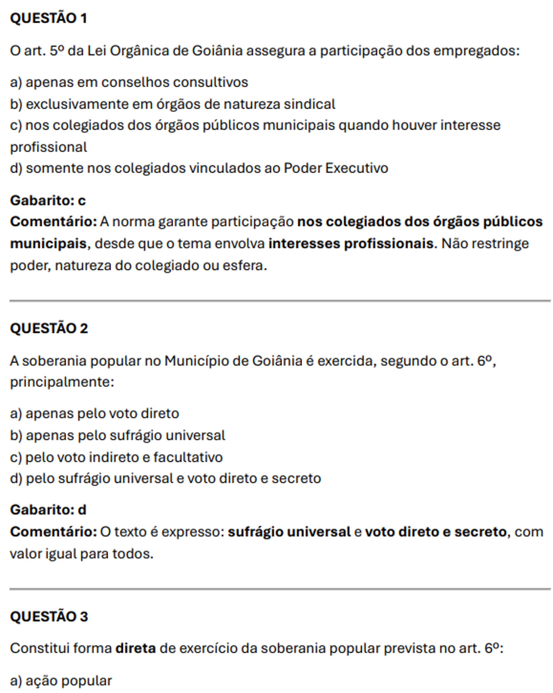 ✅ 250 questões Regimento Interno da Câmara Municipal de Goiânia